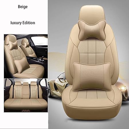 Pu Leather 5 Seats Car Seat Cover Cushion Pu Leather 5 Seats Front Rear Lumbar Pillow Head Rest Car Seats Leather Car Seat Covers Carseat Cover